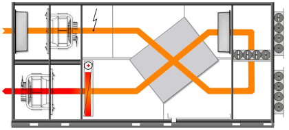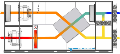 Осушение воздуха осуществляется в регулируемом режиме приточно-вытяжной вентиляции с подачей свежего и утилизацией части отработанного воздуха. Многократное осушение воздуха происходит путем охлаждения воздуха из плавательного бассейна в блоке пластинчатого рекуператора. Смешивание с более холодным приточным воздухом улучшает охлаждающий эффект в блоке пластинчатого рекуператора и значительно увеличивает осушение воздуха. В холодные месяцы открытие клапанов приточного / вытяжного воздуха регулируется в пределах от 20 до 99%.