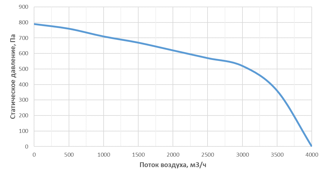 Производительность, (м3/ч / Па) | 3000/520 |