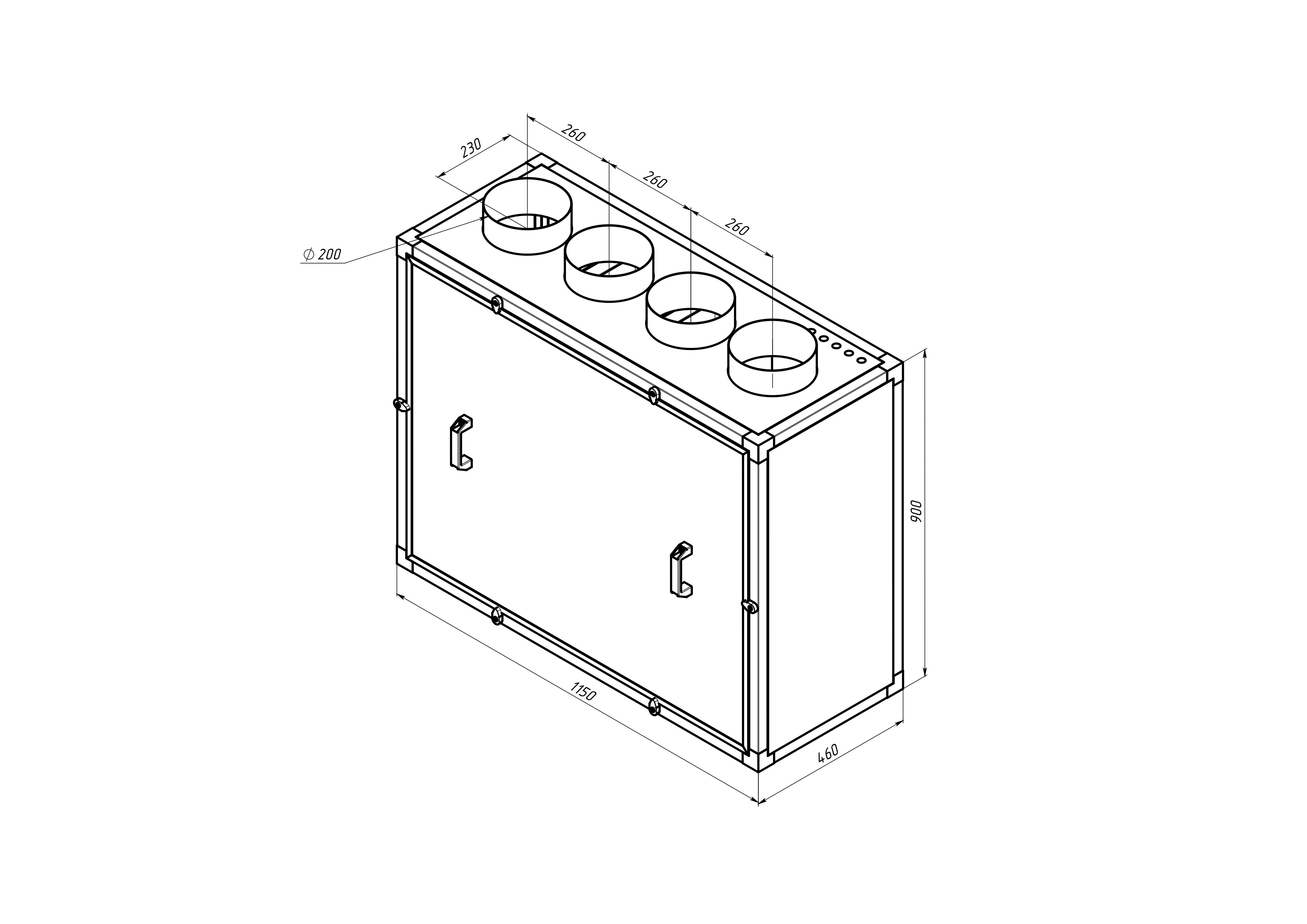 Удобство размещения и монтажа. Отсутствие необходимости сбора и отвода конденсата позволяет размещать наши приточно-вытяжные установки с рекуператором и на полу и на стене и на потолке. Там, где удобно их разместить. Крепятся они в четырех точках. Автоматика встроенная. Вам необходимо лишь закрепить агрегат, подключить к нему воздуховоды, закрепить пульт управления, вставить датчик подаваемой температуры в подающий воздуховод и включить приточно-вытяжную установку в розетку. Готово.