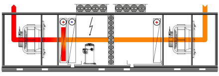 Осушение с использованием 100% подачи / удаления воздуха и теплового насоса (летний режим)