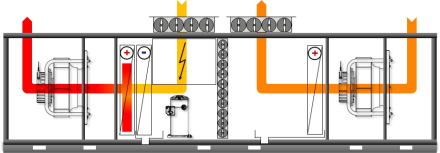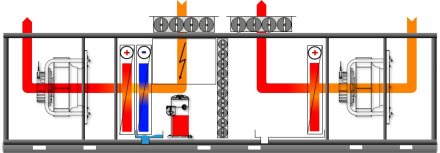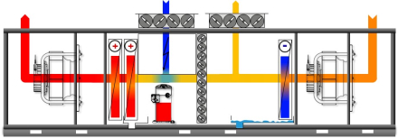 Осушение воздуха осуществляется в регулируемом режиме приточно-вытяжной вентиляции с подачей свежего и утилизацией части отработанного воздуха. Осушение воздуха происходит путем охлаждения воздуха из плавательного бассейна в блоке рециркуляции. Смешивание с более холодным приточным воздухом улучшает охлаждающий эффект увеличивая осушение воздуха. В холодные месяцы открытие клапанов приточного / вытяжного воздуха регулируется в пределах от 20 до 99%.